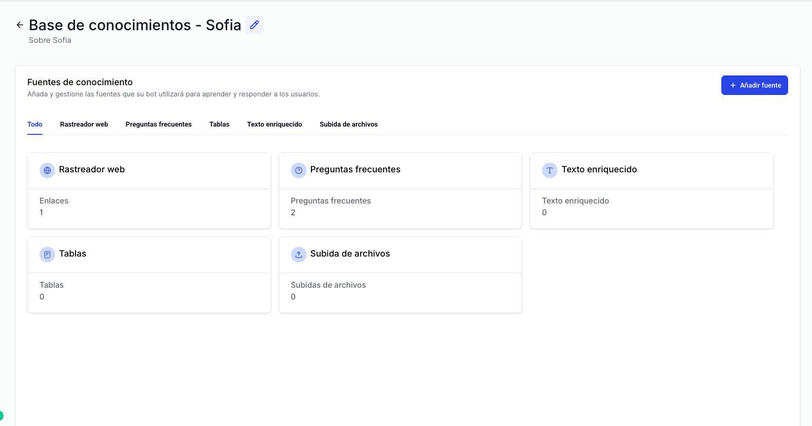SOFÍA aprende tu negocio con la información que tú decidas: textos, páginas web, PDFs, archivos de Excel y más. No improvisa ni usa datos genéricos, responde basándose únicamente en lo que tú le enseñas.